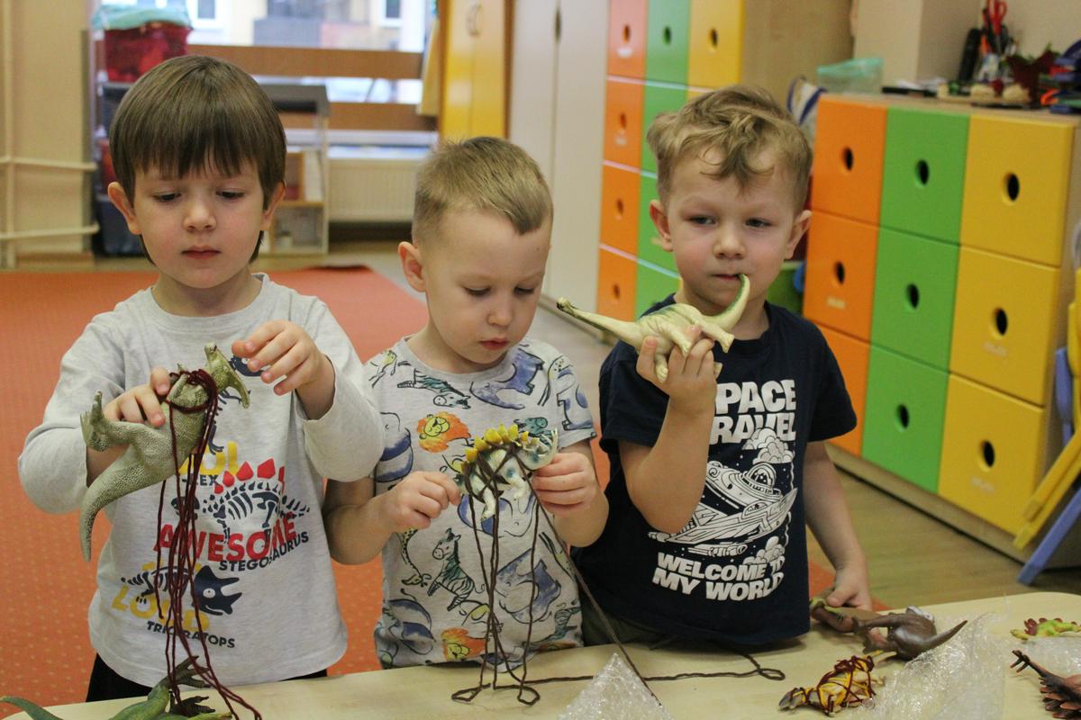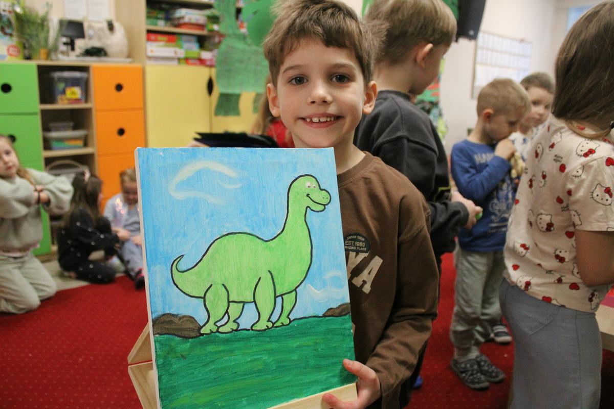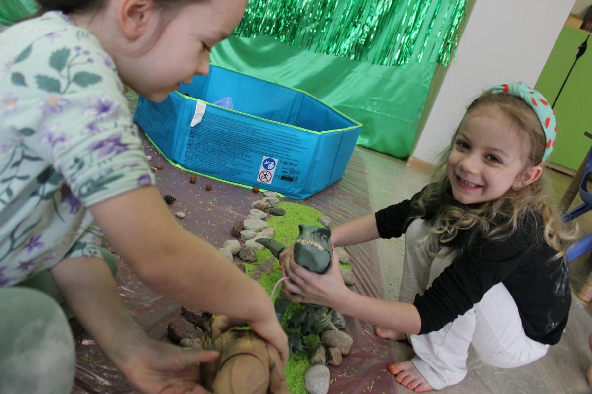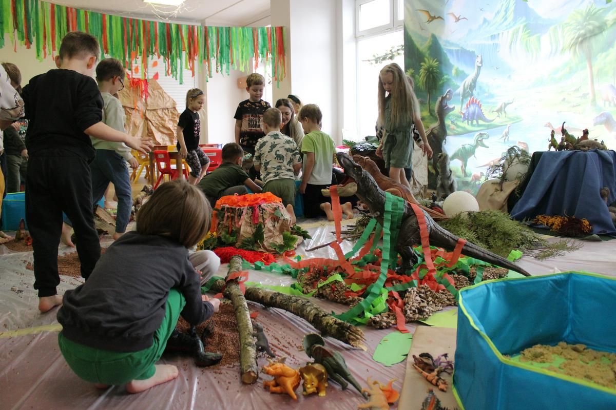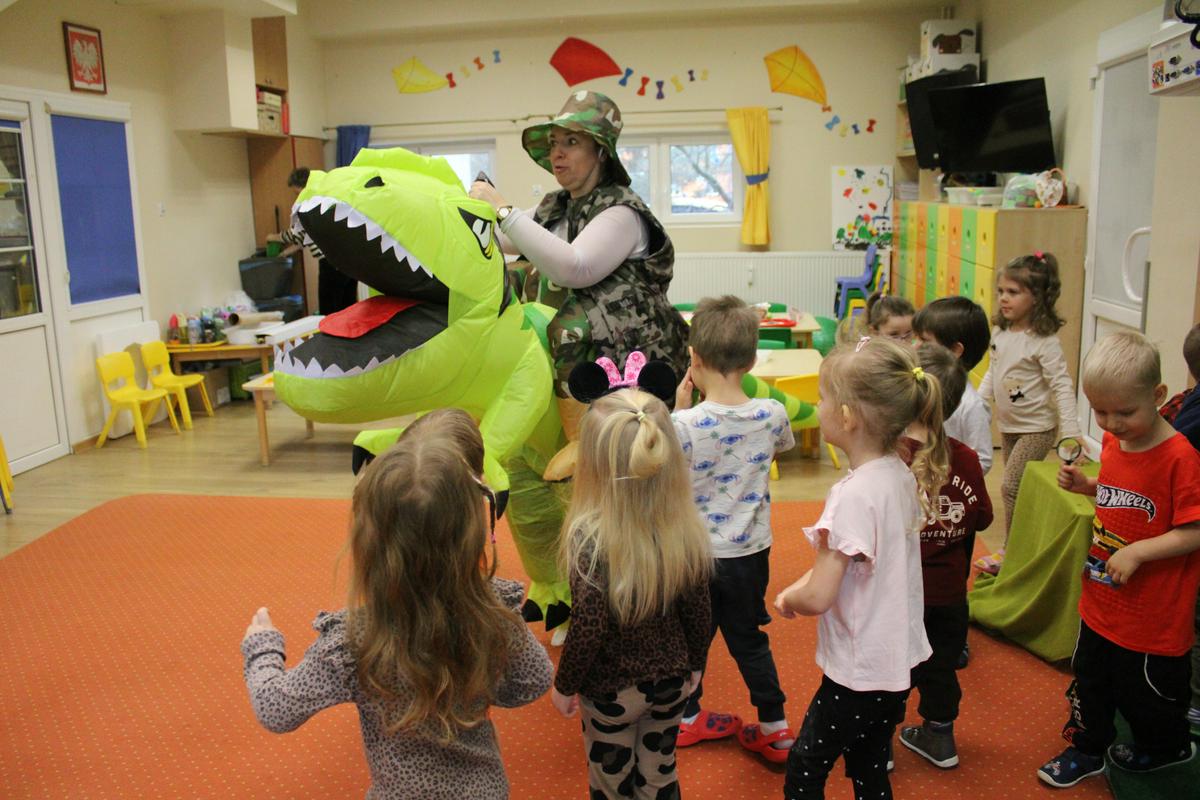 26 lutego obchodziliśmy w naszym przedszkolu Dzień Dinozaura. Podczas całego tygodnia projektowego, pod hasłem: “W świecie dinozaurów”, dzieci odkrywały tajemniczy świat prehistorycznych gadów, którymi były dinozaury. Poznawały ich nazwy, także w języku angielskim; pracę PALEONTOLOGA oraz eksperymentowały z ich jajkami, przekopywały ziemię w poszukiwaniu kości, z których układały szkielet. “Starszacy” przygotowywali w domu informacje- plakaty na temat wybranego gatunku dinozaura. Powstały piękne prace, które Promyczki prezentowały podczas zajęć.