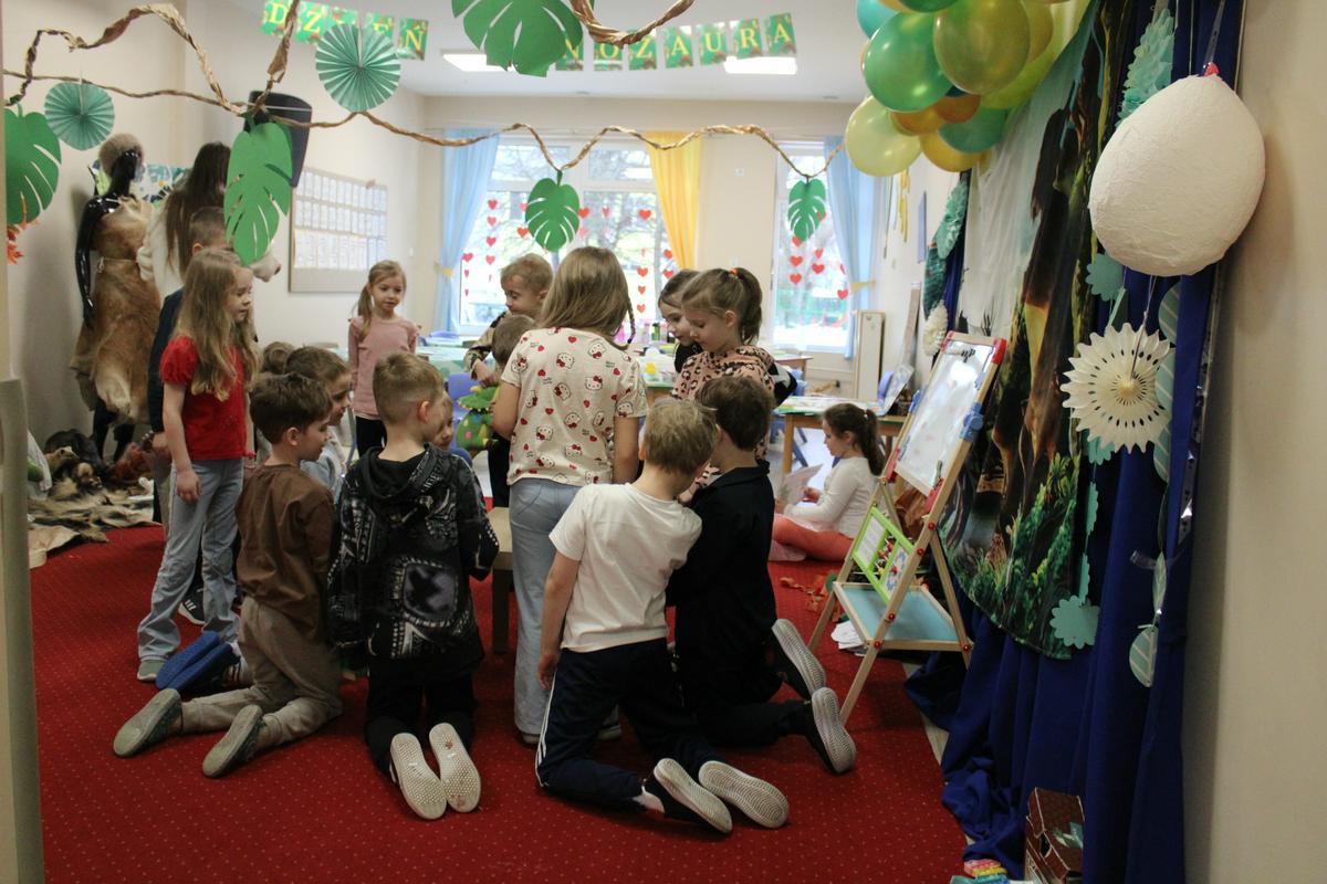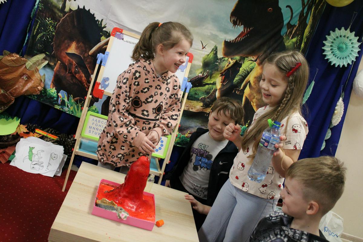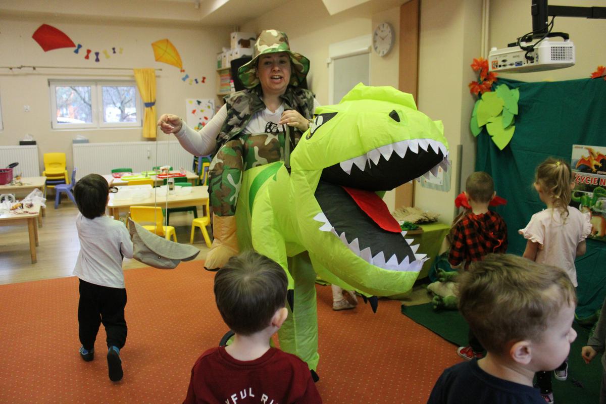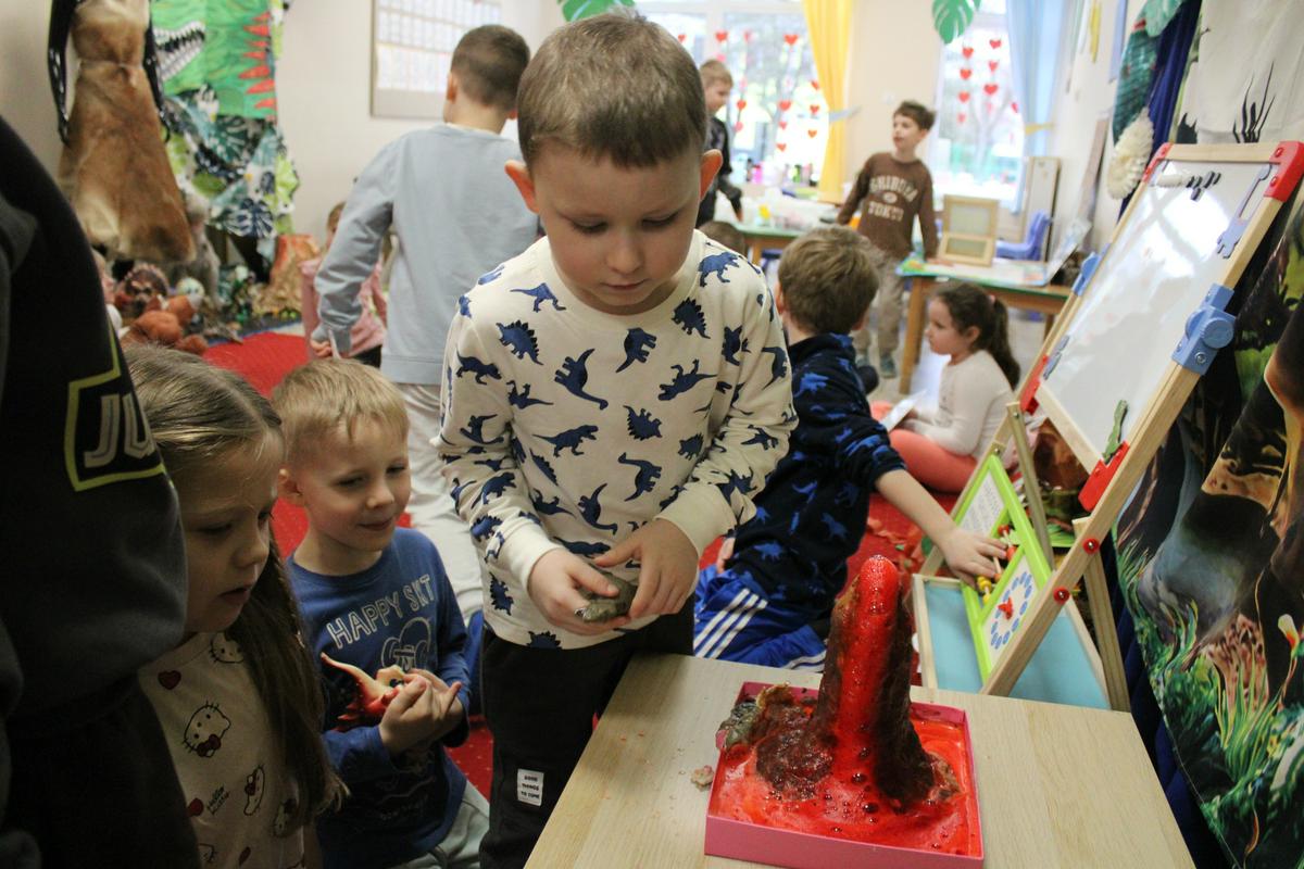 26 lutego obchodziliśmy w naszym przedszkolu Dzień Dinozaura. Podczas całego tygodnia projektowego, pod hasłem: “W świecie dinozaurów”, dzieci odkrywały tajemniczy świat prehistorycznych gadów, którymi były dinozaury. Poznawały ich nazwy, także w języku angielskim; pracę PALEONTOLOGA oraz eksperymentowały z ich jajkami, przekopywały ziemię w poszukiwaniu kości, z których układały szkielet. “Starszacy” przygotowywali w domu informacje- plakaty na temat wybranego gatunku dinozaura. Powstały piękne prace, które Promyczki prezentowały podczas zajęć.