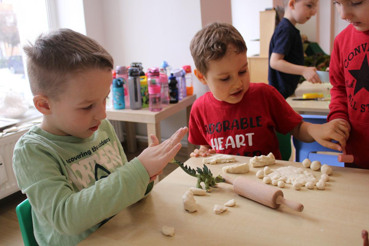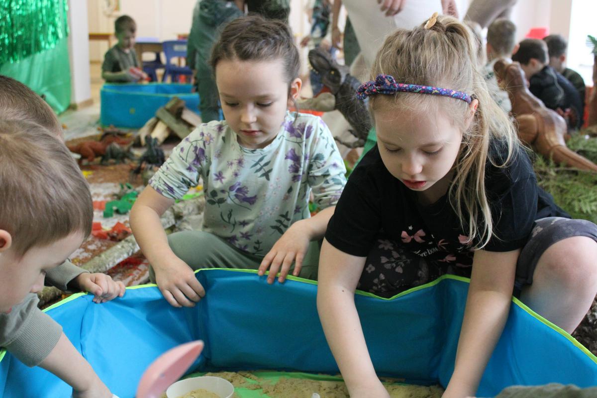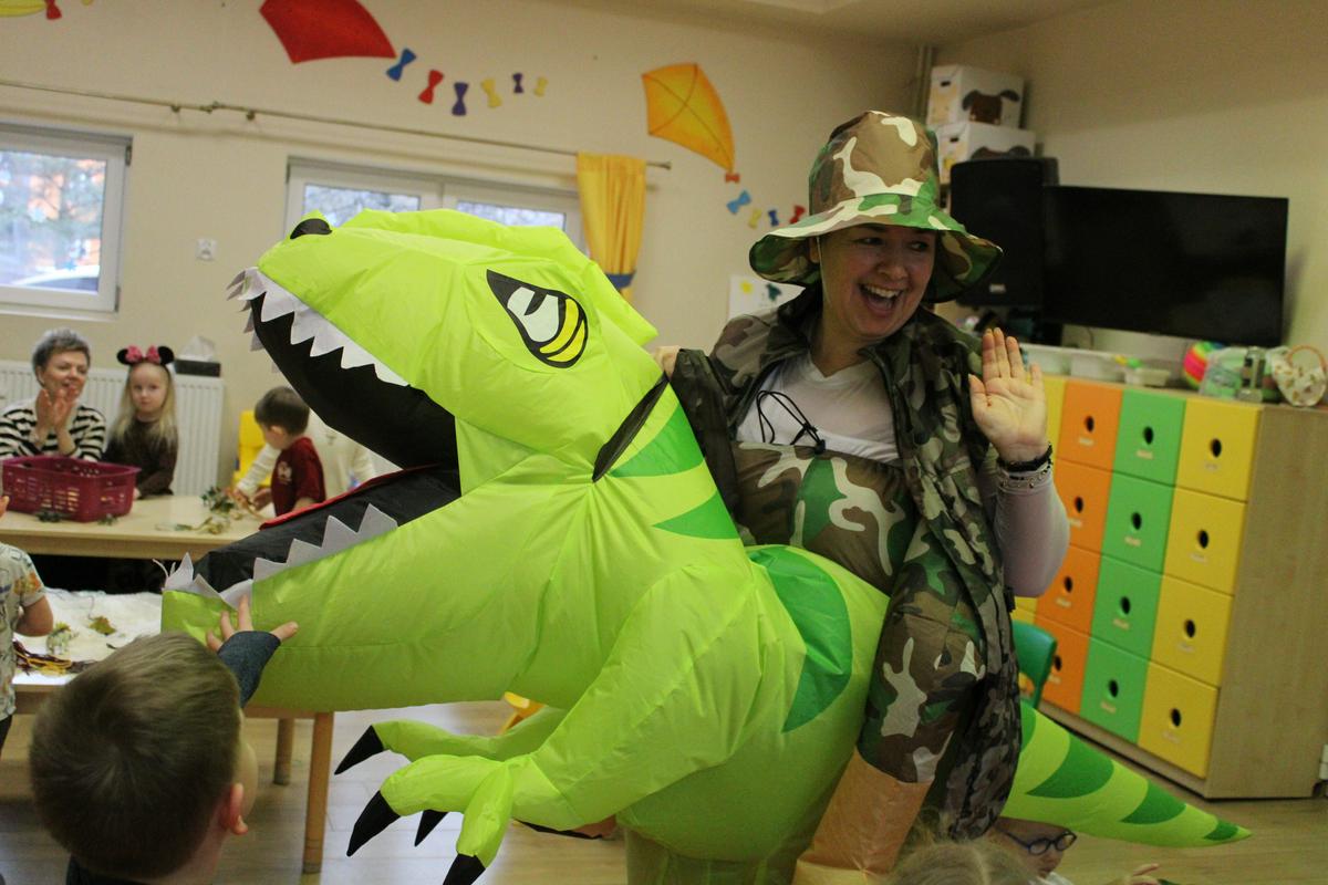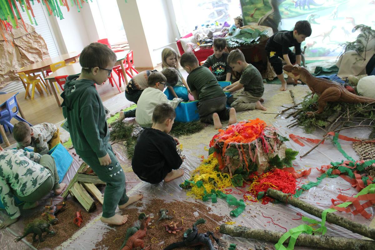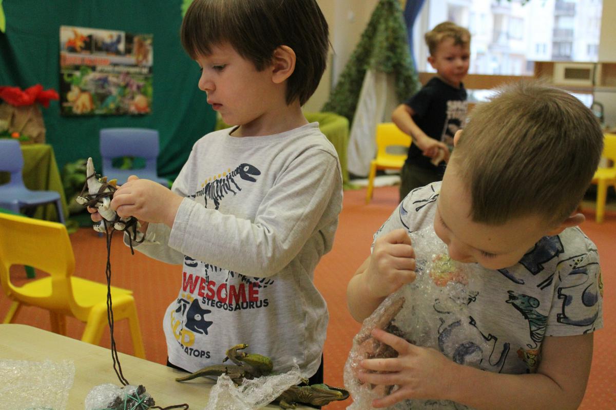 26 lutego obchodziliśmy w naszym przedszkolu Dzień Dinozaura. Podczas całego tygodnia projektowego, pod hasłem: “W świecie dinozaurów”, dzieci odkrywały tajemniczy świat prehistorycznych gadów, którymi były dinozaury. Poznawały ich nazwy, także w języku angielskim; pracę PALEONTOLOGA oraz eksperymentowały z ich jajkami, przekopywały ziemię w poszukiwaniu kości, z których układały szkielet. “Starszacy” przygotowywali w domu informacje- plakaty na temat wybranego gatunku dinozaura. Powstały piękne prace, które Promyczki prezentowały podczas zajęć.