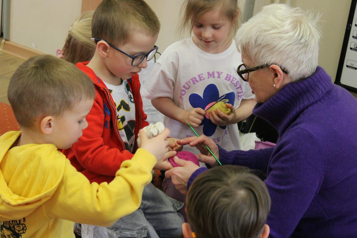 W ramach międzypokoleniowej współpracy pomiędzy seniorami i dziećmi, nasze przedszkole odwiedziła pani Basia ze swoją wnuczką Elą- absolwentką przedszkola. Chętnie opowiedziały o swojej pasji- robótkach ręcznych. Dzieci mogły doświadczyć pracy z nićmi, szydełkiem itp. przy okazji obserwując, jak piękne dzieła powstają. Kultywowanie tradycji i przekazywanie jej dzieciom to super sprawa! Przekonały się o tym nasze Promyki i być może u kogoś narodzi się podobna pasja, czego serdecznie życzymy:)