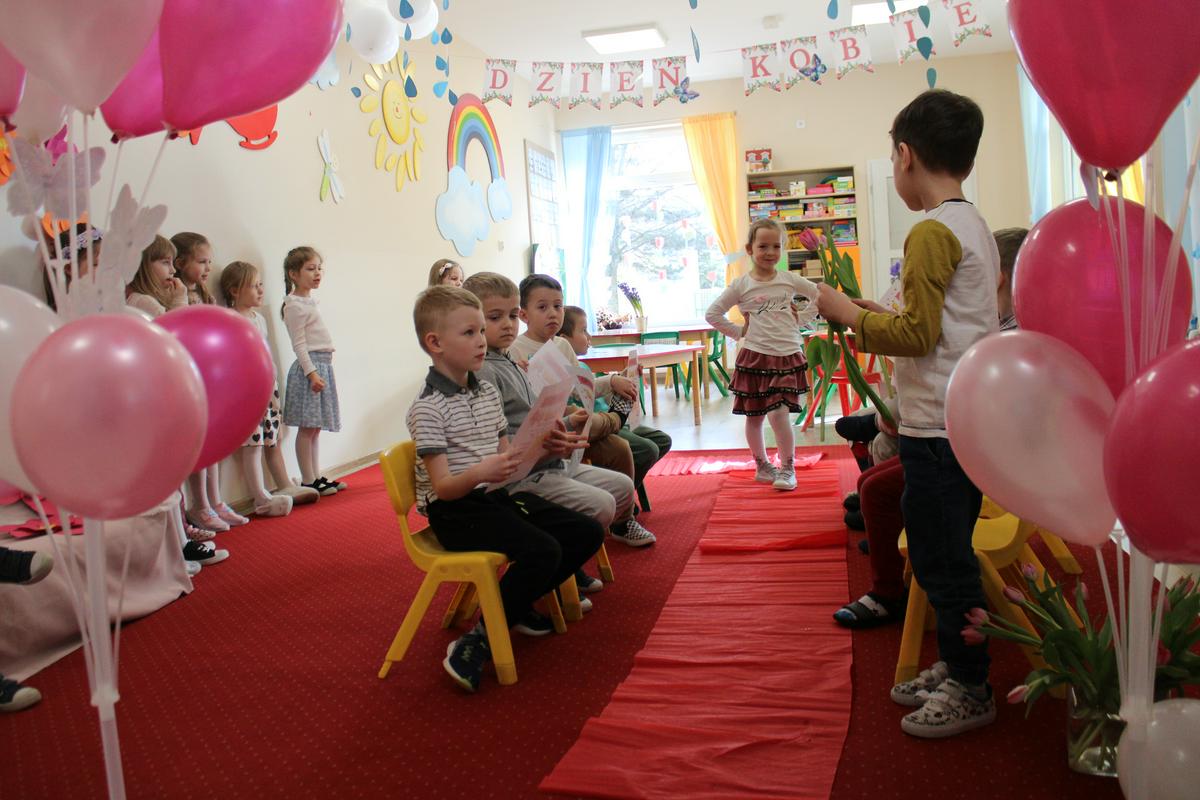 Nasze małe i duże kobietki świętowały swój dzień w bardzo przyjemnej scenerii, którą wypełnione były promykowe sale. Dziewczynki mogły poczuć się wyjątkowo, ponieważ chłopcy w tym dniu dbali o swoje koleżanki, wyręczając je w sprzataniu, robiąc koleżankom masażyki piórkiem i wręczając piękne laurki, kwiaty i małe prezenciki😊 Wszystkie aktywności dążyły do ukazania szacunku, podziwu i integracji między dziećmi oraz dorosłymi.