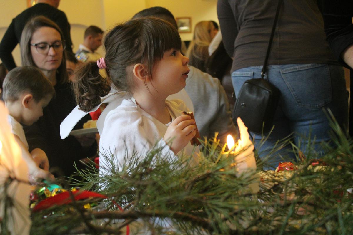 Jak przystało na Wigilię, nie zabrakło łamania się opłatkiem, świątecznych życzeń oraz wizyty świętego Mikołaja, który wręczył dzieciom piękne prezenty. Dzieci wspólnie z rodzicami śpiewały kolędy, a na zakończenie wszyscy radowali się przy wspólnym, wigilijnym poczęstunku.