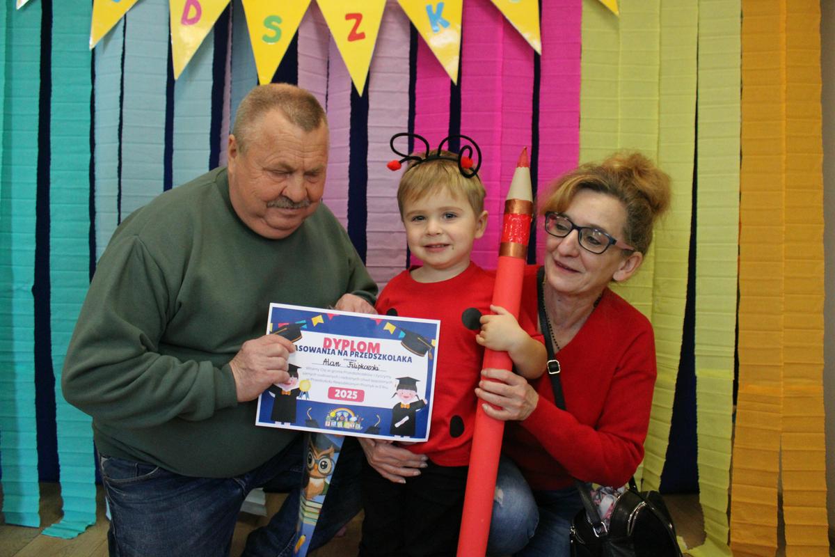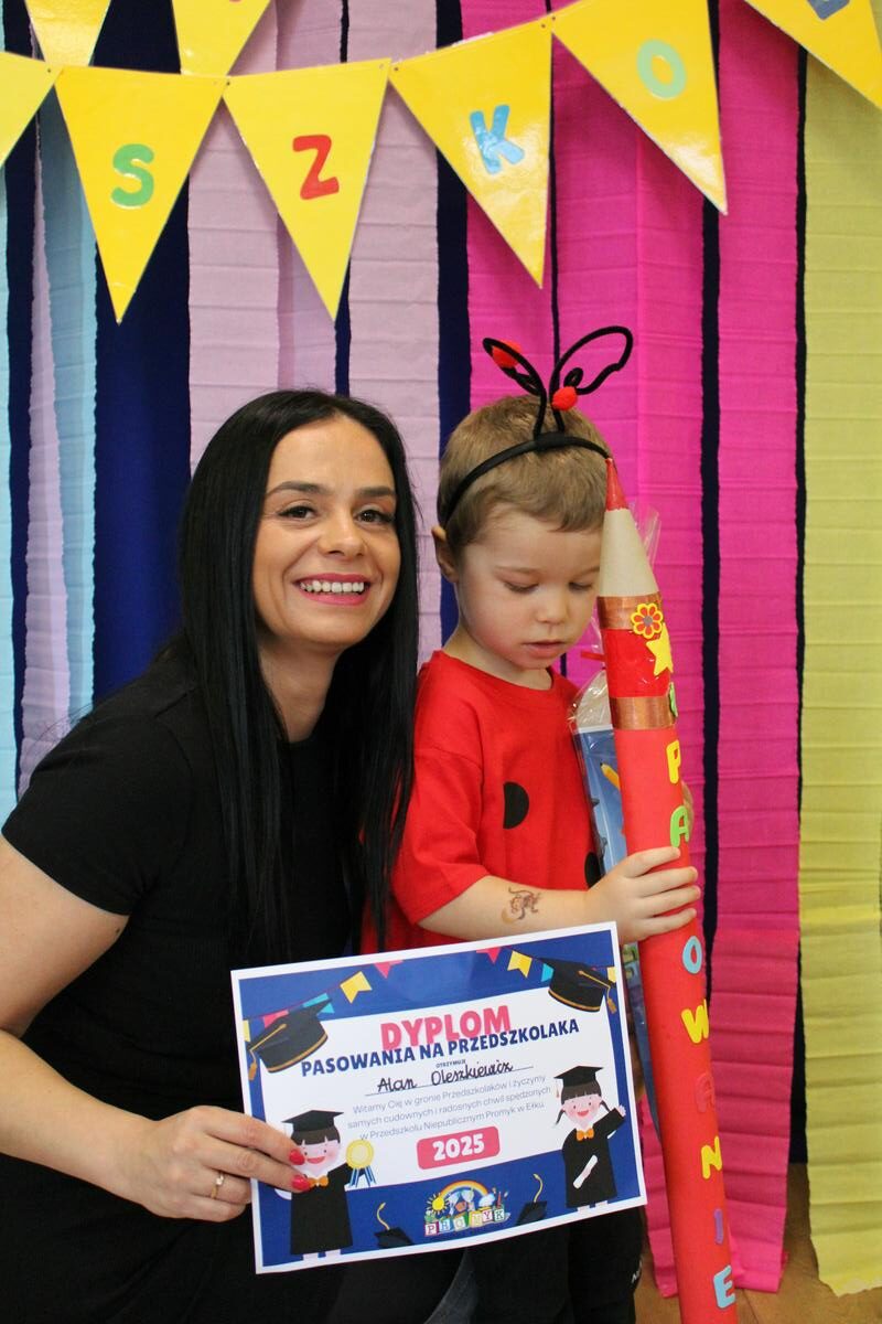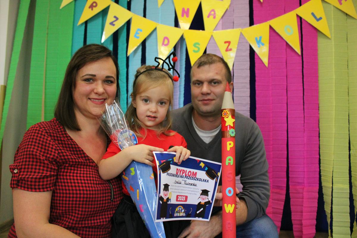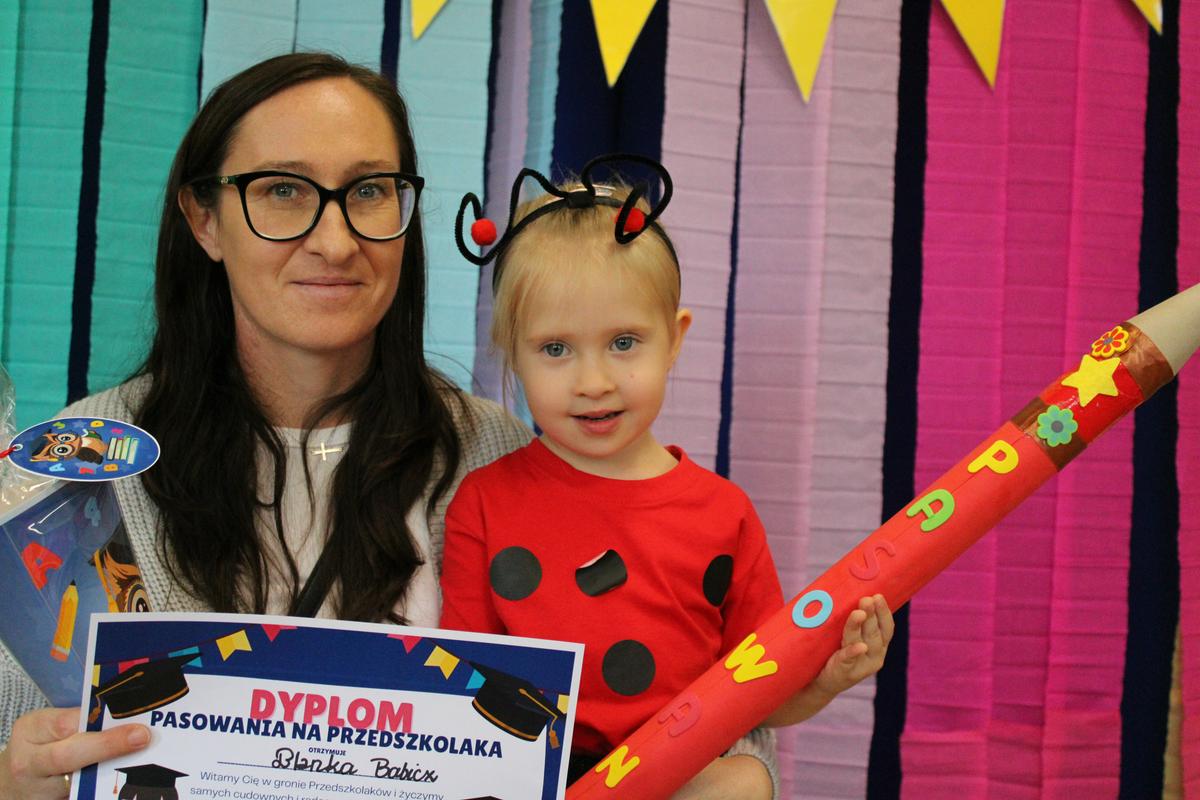 Dzielnie przygotowywały się do tak ważnej uroczystości. Zaśpiewały piosenki, powiedziały wierszyk i pięknie zaprezentowały się na naszej promykowej scenie. Pani Dyrektor, wielkim ołówkiem, pasowała każdą Biedroneczkę, nadając jej tytuł: PRZEDSZKOLAKA 😊